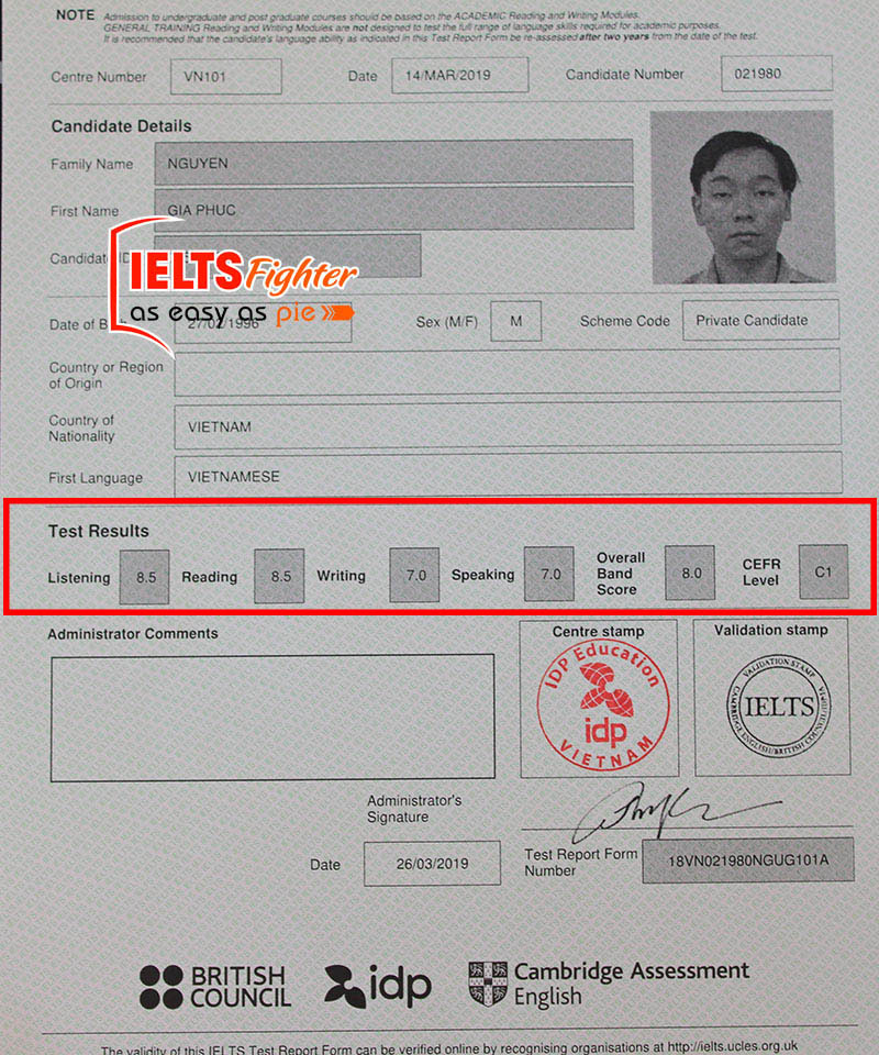 - Bài thi khá khó, bạn phản luyện thi rất lâu, thậm chí nhuần nhuyễn chưa chắc đã đạt 8.0