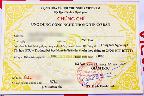 Hình ảnh chứng chỉ Tin học chuẩn phôi Bộ GD-ĐT.