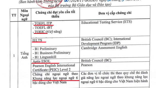 Hình ảnh các loại chứng chỉ được Bộ cho phép. Thí sinh lưu ý tránh thi các chứng chỉ giả mạo.