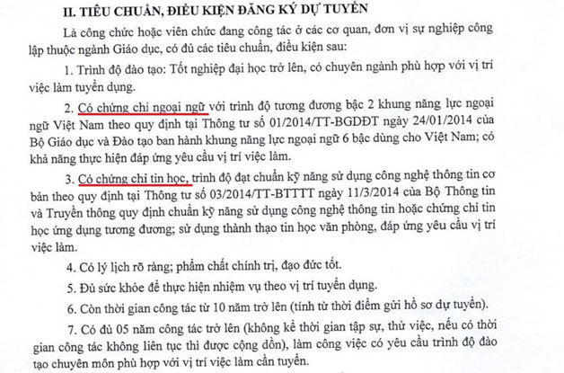 Các chứng chỉ có trong công văn là chứng chỉ được Bộ Giáo dục và Đào tạo cho phép cấp, ngoài ra không chấp nhận bất cứ loại khác để xét tuyển Công chức Viên chức.