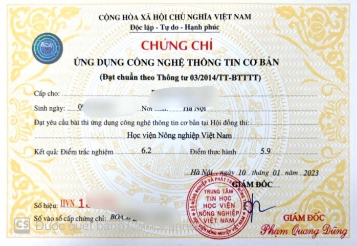 Hình ảnh Chứng chỉ Tin học