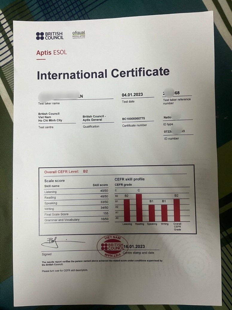 2.4. Chứng chỉ Aptis Esol (Hội đồng anh cấp)