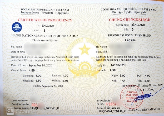 - Theo khung năng lực ngoại ngữ 6 bậc dành cho Việt Nam.