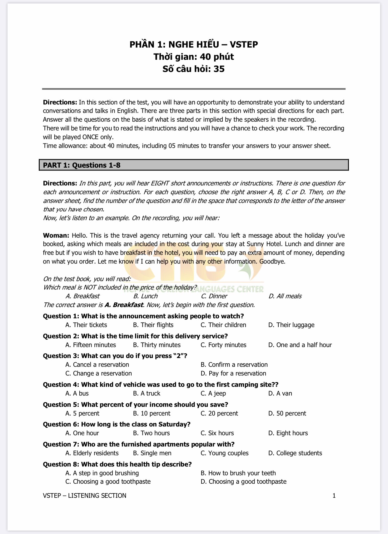 Vì vậy, để có thể thi đạt Vstep B2, bạn cần có chiến lược làm bài nhất định. Các bài đọc tiếng Anh B2 Vstep có những dạng câu hỏi như: