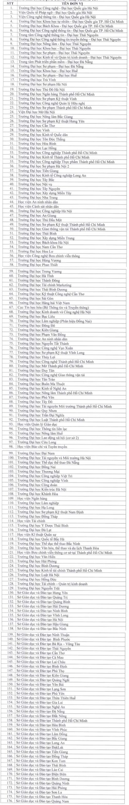 Danh sách 176 trường đủ điều kiện tổ chức thi và cấp chứng chỉ Tin học theo Thông tư 03/2014/TT-BTTTT như sau: