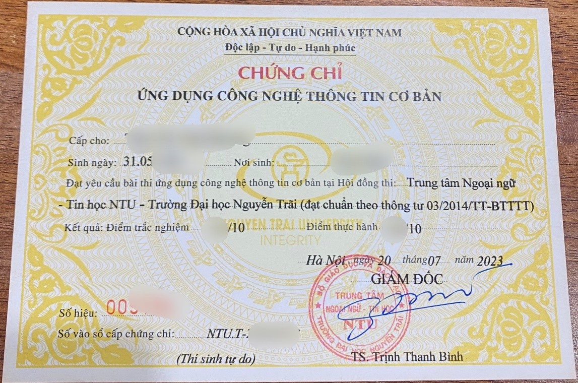 ❤️ Thông báo tổ chức ôn tập thi ứng dụng CNTT cơ bản theo TT 03/2014 chuẩn Phôi Bộ GD-ĐT có giá trị toàn quốc: