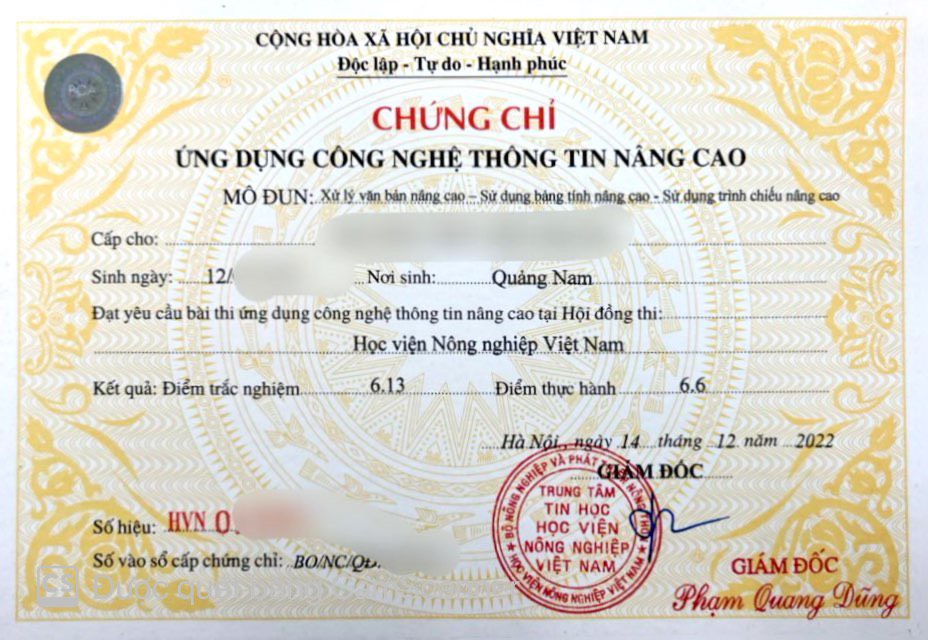 Hình ảnh Chứng chỉ Tin học Nâng cao